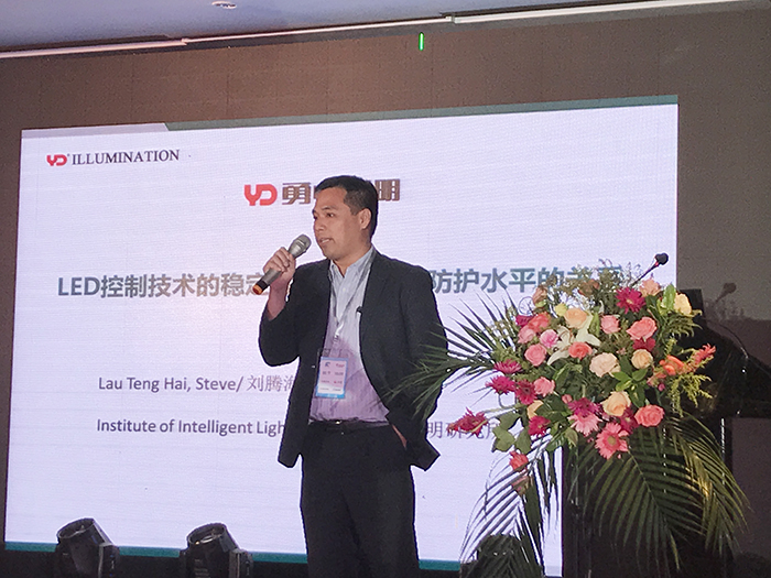 會(huì)上,勇電智能照明研究所劉騰海副所長(zhǎng)發(fā)表了《LED控制技術(shù)的穩(wěn)定性與整個(gè)系統(tǒng)防護(hù)水平的關(guān)系》的主題演講。劉副所長(zhǎng)指出,城市照明在旅游經(jīng)濟(jì)發(fā)展中發(fā)揮著不可或缺的助推作用,勇電體感互動(dòng)控制系統(tǒng)豐富了城市照明環(huán)境的表現(xiàn)力,并結(jié)合案例視頻詳細(xì)介紹了勇電體感互動(dòng)控制系統(tǒng)是如何應(yīng)用在不同項(xiàng)目上的。勇電體感互動(dòng)控制系統(tǒng)搭載的勇電二次封裝LED照明燈具防護(hù)等級(jí)高達(dá)IP68,阻燃等級(jí)V-0級(jí),抗UV等級(jí)4-5級(jí),可在戶外不同惡劣環(huán)境中長(zhǎng)期使用,且勇電LED照明燈具以直流供電為主,不會(huì)產(chǎn)生電化學(xué)腐蝕。