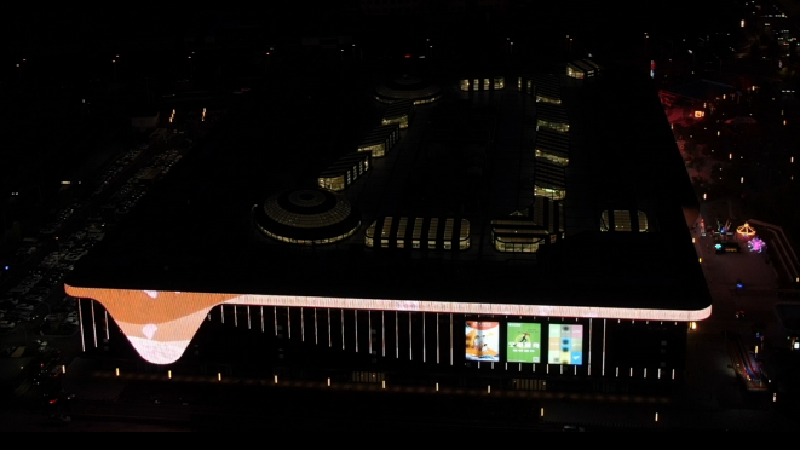 光與建筑融為一體,為建筑發(fā)“聲”。燈具采用智能控制,賦予了建筑各種豐富的動態(tài)“表情”,讓建筑外立面在不同營業(yè)時間段、不同節(jié)日能夠自由調(diào)節(jié),滿足功能性照明的前提下,實現(xiàn)節(jié)能環(huán)保。