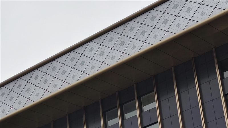 我們在幕墻裝飾板上計算好位置進行沖孔,采用內(nèi)透的方式進行安裝,使得燈具能夠完美隱匿又便于檢修。同時我們的技術(shù)人員對燈具的安裝高度、密度等都進行了精準測算,無論是近觀還是遠望均無眩光干擾。