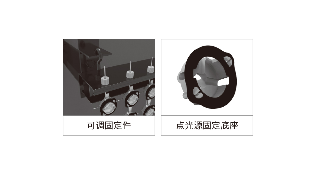 1、使用不銹鋼絲網(wǎng)作為光源固定。 2、采用二次封裝點光源配合塑膠固定件安裝。 3、易安裝、運維、運輸。