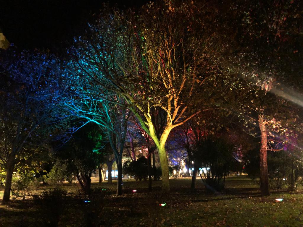 一般采用功率大,亮度高的大功率地埋燈,將其鑲嵌于樹木周邊,進(jìn)而起到隱蔽安裝,照亮樹木的一種照明手法。